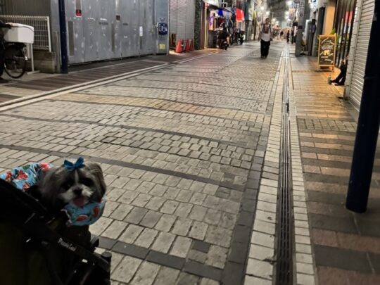 日本とアメリカが混ざった商店街。テラスで愛犬と食事できるお店も。