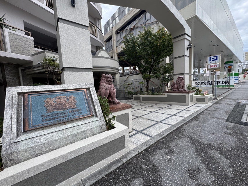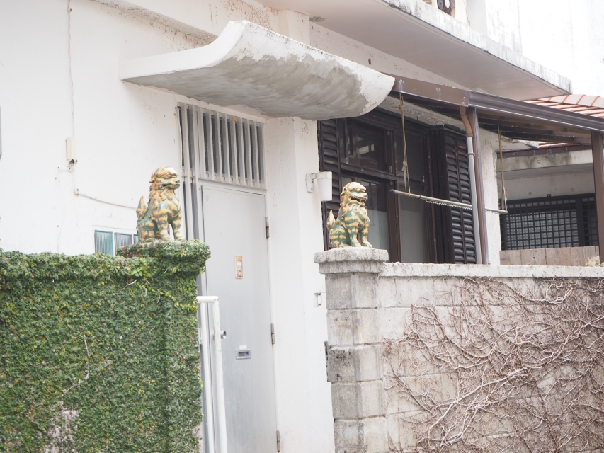 ライオンズマンションの入り口にもシーサー。
