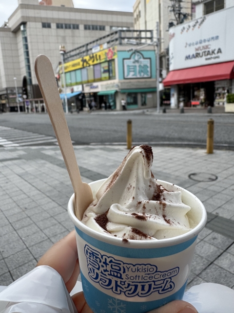 雪塩さんどのお店で雪塩ソフトクリームで休憩です。