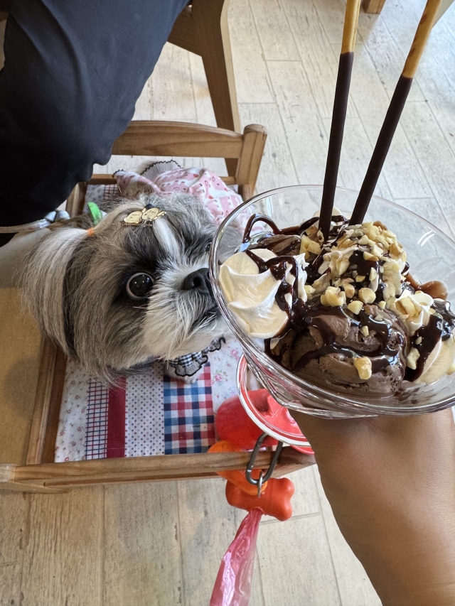 そして公園の(練馬区側)すぐ向かいにあるカフェでは、店内で愛犬と食事ができます。メニューはパスタなどの食事系からワッフルやパフェなどのデザート系まで。値段もとてもリーズナブルで美味しくて入りやすいです。天然酵母で作るパンなどのドッグメニューもあります。
