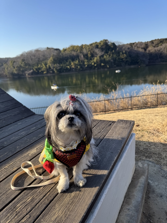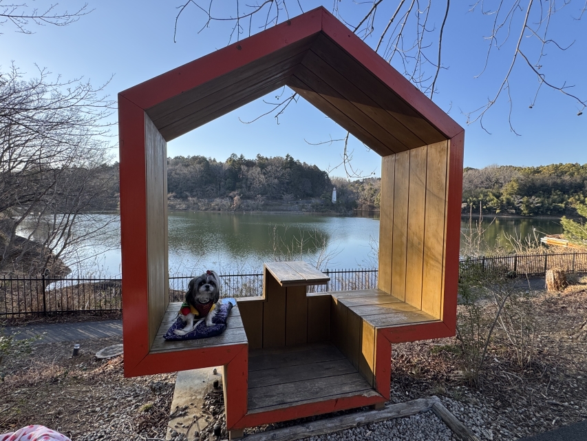 右手には湖が広がっていて、愛犬とボートに乗ったり、特徴的な休憩場所があったり、愛犬の思い出写真にもぴったりです。