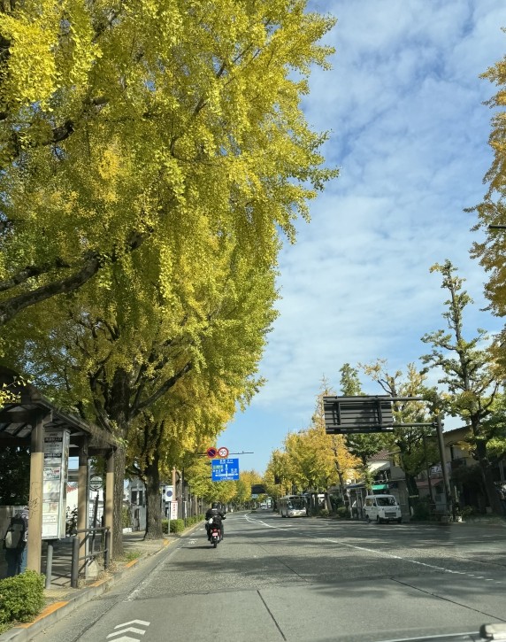 高尾山口に近づくと、このシーズンは銀杏並木の景色が本当に綺麗です。