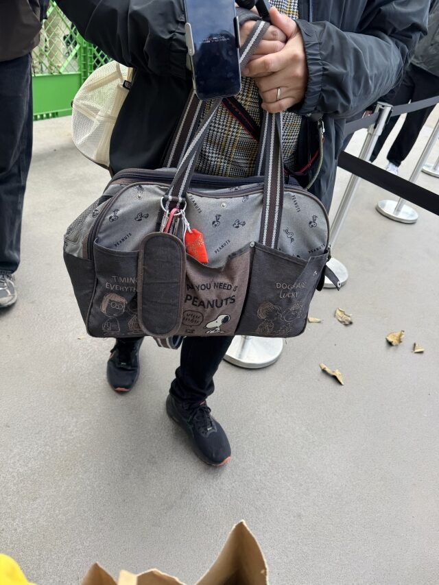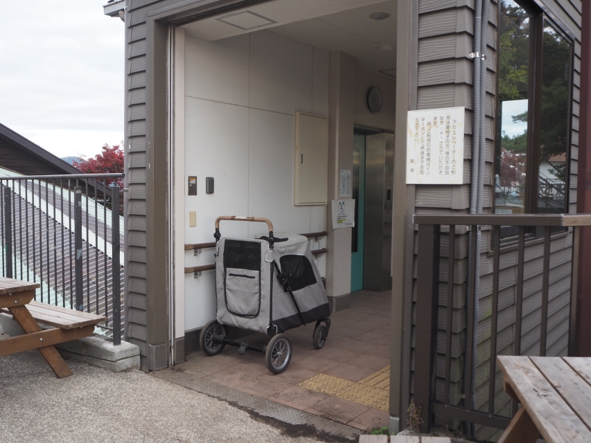 そして愛犬とケーブルカーに乗るには、顔まですっぽり入る入れ物に入れないといけないのだそうで、一応キャリーケースの貸し出しもしてくれるのだそうですが、行楽シーズンだと全部出てしまっているなんてこともありそうだったので、自分のバッグに入りました。