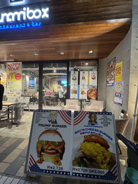 このお店のメニューが変わっていて、トランプバーガーとかハリスバーガーとかあるのです。